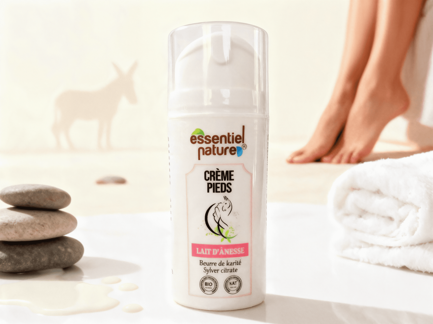 Cette crème pieds se distingue par sa formule à 99,5 % d’origine naturelle, enrichie en lait d’ânesse bio pour nourrir et adoucir la peau, et en Silver Citrate pour maintenir l’équilibre cutané. Un véritable soin professionnel, inspiré des rituels d’institut, pour des pieds doux, protégés et confortables.